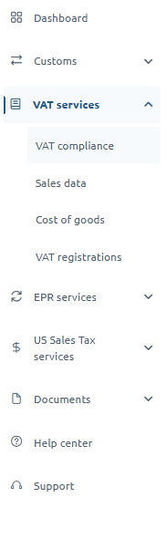 Select VAT Services from the left pane and then VAT Compliance from the dropdown menu