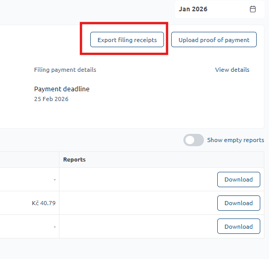 On the Filing Summary screen, locate the ‘Export filing receipts’ button, as shown in the screenshot below.